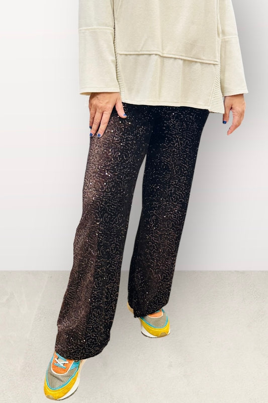 Charizma - Βελούδινη Παντελόνα με Παγιέτες & Ελαστική Μέση Καφέ