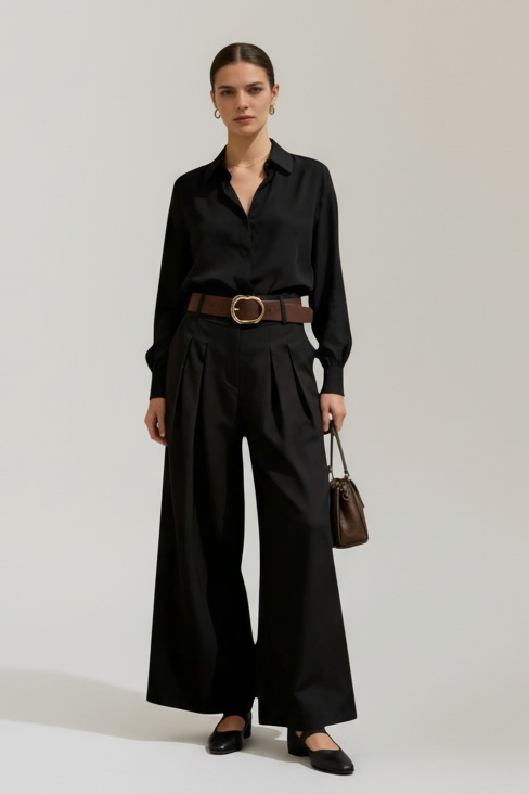 New Age Cola - Γυναικείο Παντελόνι με Λάστιχο στη Μέση, Πιέτες & Ρεβέρ Μαύρο
