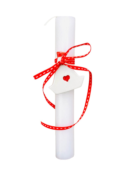 Λαμπάδα Χειροποίητη Με Κεραμικό Στοιχείο Καραβάκι Καρδιά