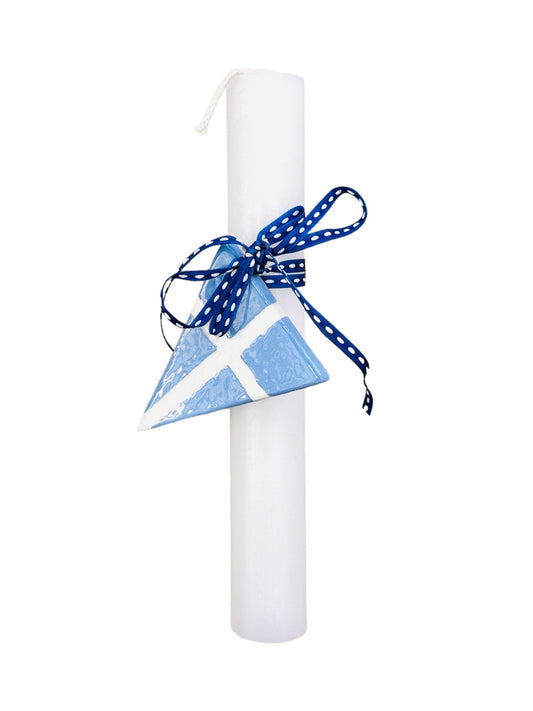 Λαμπάδα Χειροποίητη Με Κεραμικό Στοιχείο Σημαία Τριγωνική
