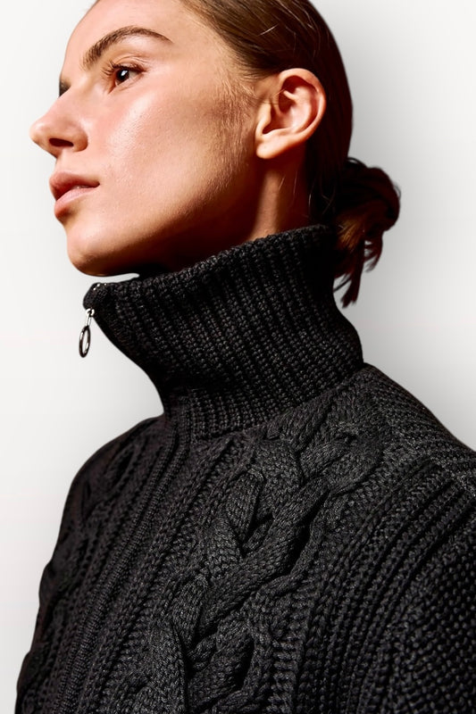 Tailor Made - Πλεκτό Ζιβάγκο Κοντό Μπουφάν με Φερμουάρ & Έντονη Πλέξη Μαύρο