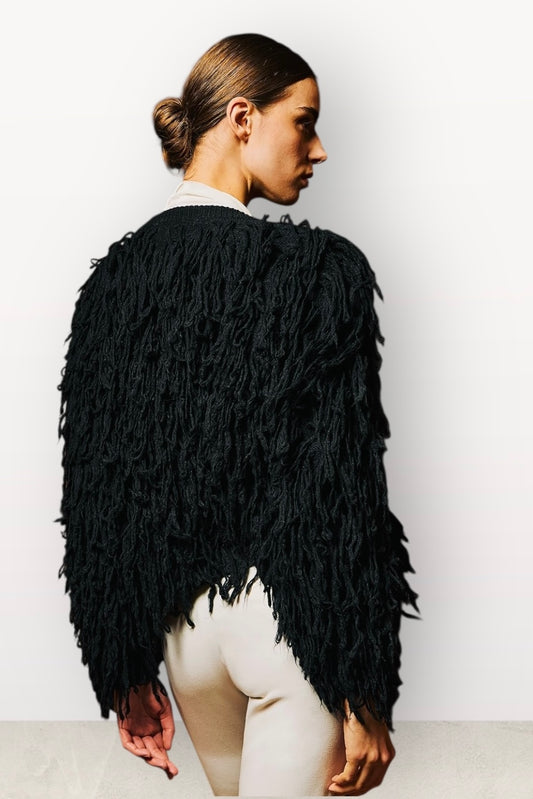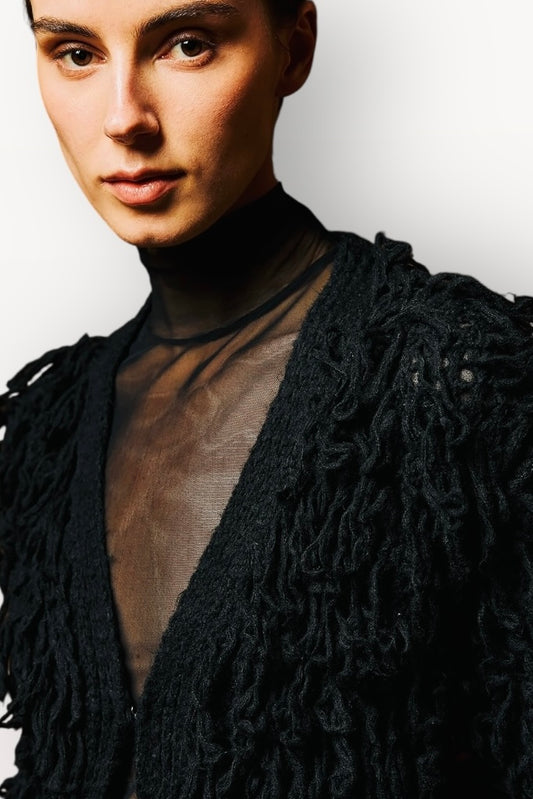 Tailor Made - Boho Touch Κοντή Πλεκτή Ζακέτα με Κρόσσια Μαύρη