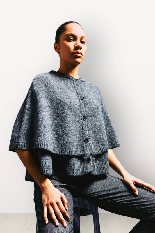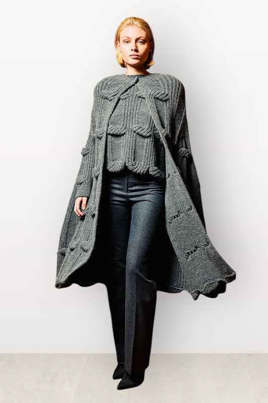 Tailor Made - Μακριά Kάπα Πλεκτή Premium Απαλή Υφή & Art-Details Γκρι