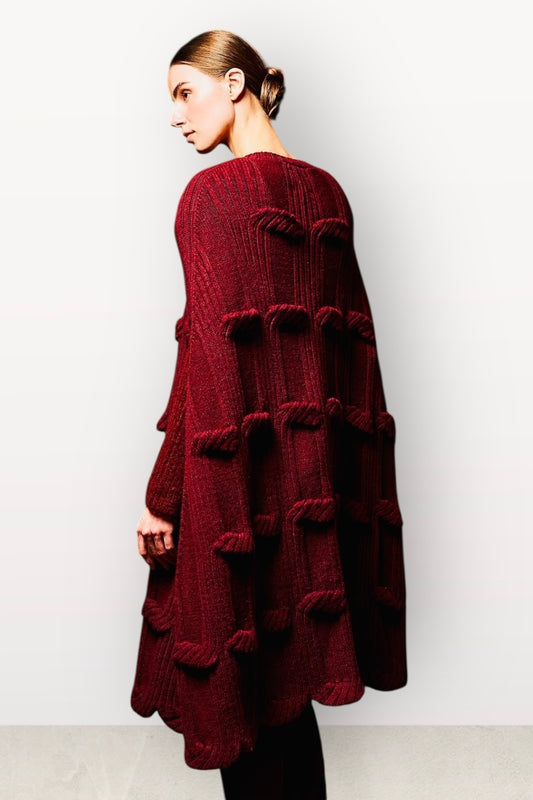 Tailor Made - Μακριά Kάπα Πλεκτή Premium Απαλή Υφή & Art-Details Μπορντό