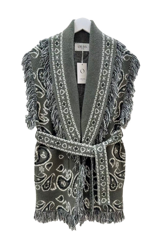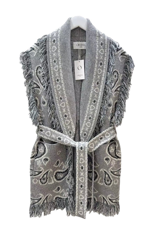 Orlinn - Αμάνικη Ζακέτα Boho Chic με Κρόσσια & Ζώνη Γκρι