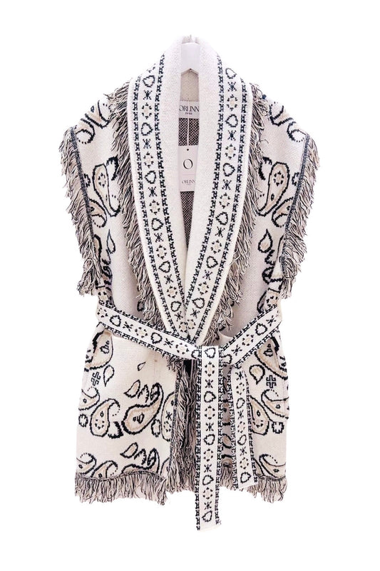 Orlinn - Αμάνικη Ζακέτα Boho Chic με Κρόσσια & Ζώνη Υπόλευκη
