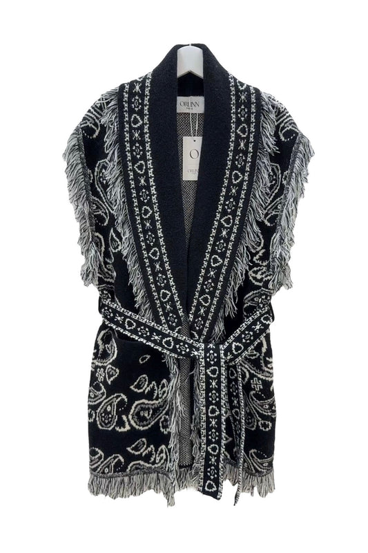 Orlinn - Αμάνικη Ζακέτα Boho Chic με Κρόσσια & Ζώνη Μαύρη