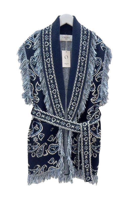Orlinn - Αμάνικη Ζακέτα Boho Chic με Κρόσσια & Ζώνη Μπλε