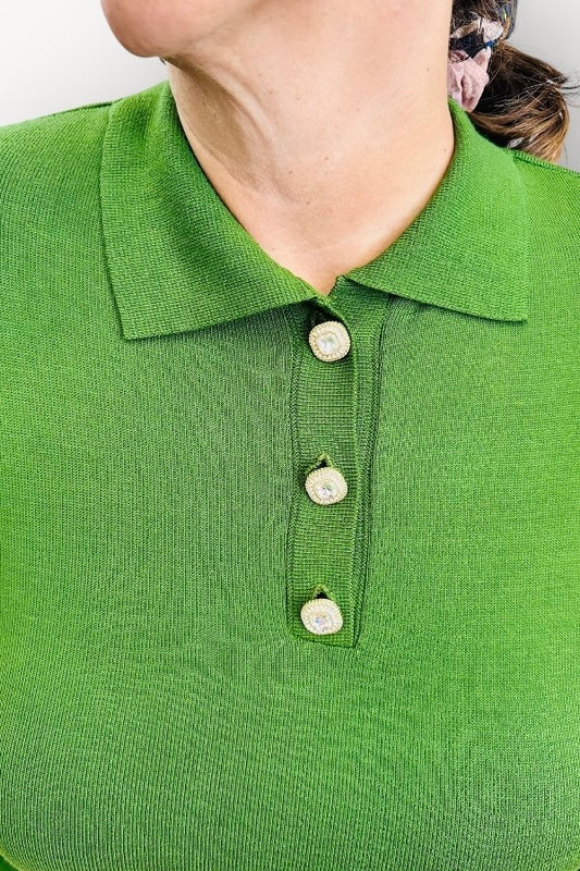 Figaro - Πράσινο Πουλόβερ με Πόλο Γιακά & Στρας Κουμπάκια