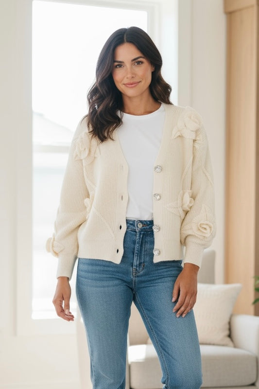 Charizma - Πλεκτή Κοντή Ζακέτα Με Λουλούδια