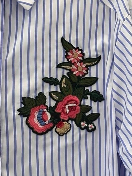 ANLYTA - Πουκάμισο Λευκό με Μπλε Ριγέ Oversized Με Κέντημα