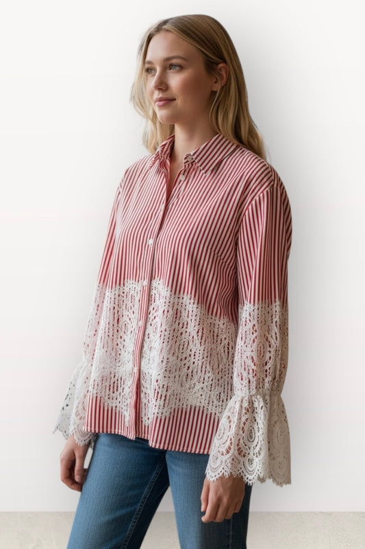 Τώρα σε νέα τιμή!Cache Cache - Πουκάμισο Ριγέ Κόκκινο Με Δαντέλα