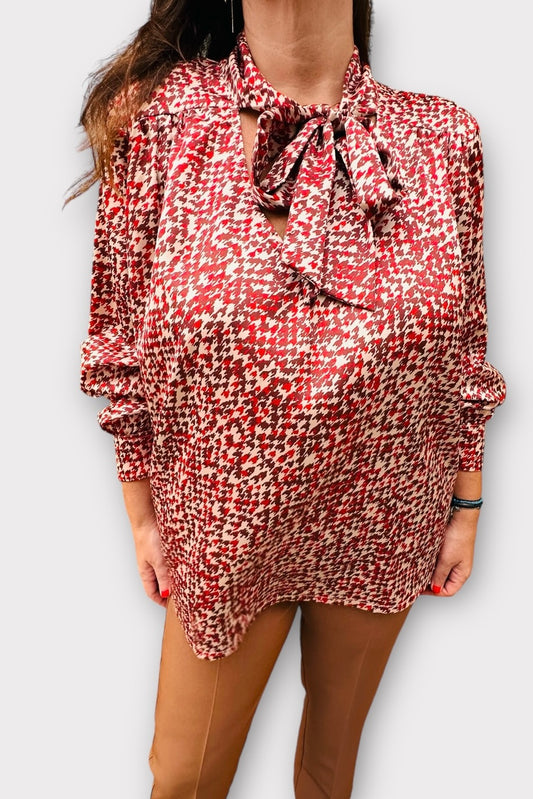 Τώρα σε νέα τιμή!Deppy Joo Πουκάμισο Anabel Εμπριμέ με Δέσιμο Μπορντό & Καφε