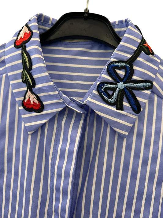 ANLYTA - Πουκάμισο Μπλε Ριγέ Oversized Με Κέντημα Στον Γιακά