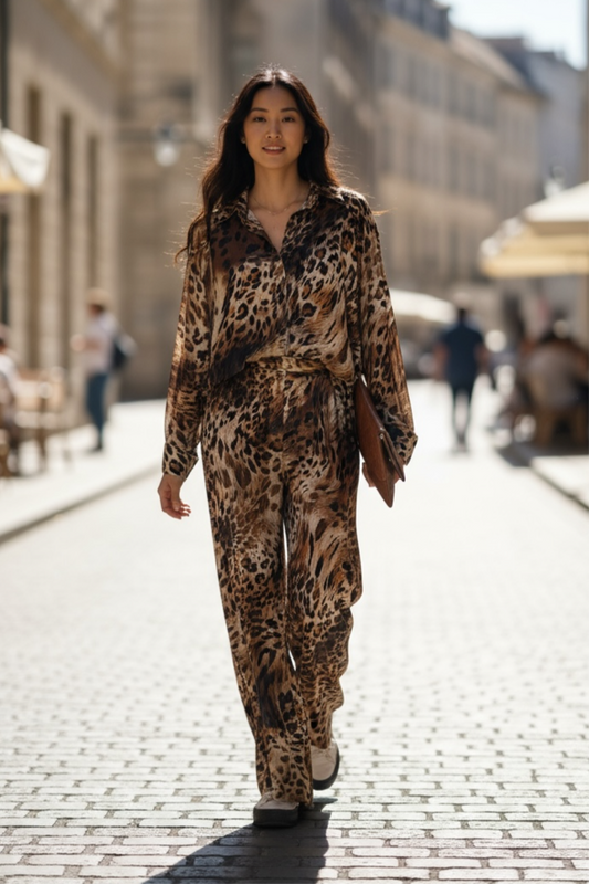 Charizma - Σετ Πουκαμισο & Παντελόνα Σατέν Animal Print