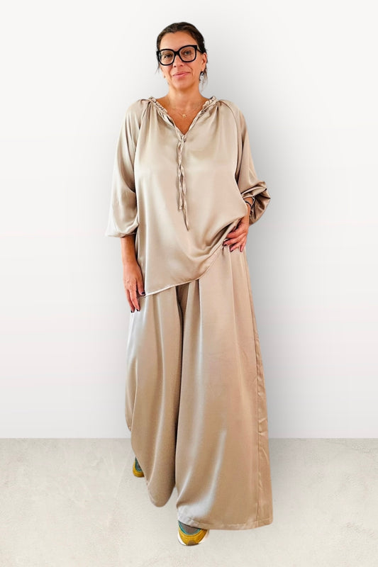 Charizma - Σετ Αέρινη Μπλουζα & Παντελόνα Σατέν Μπεζ