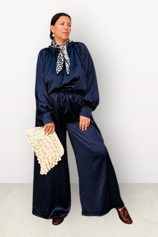 Charizma - Σετ Αέρινη Μπλουζα & Παντελόνα Σατέν Μπλέ