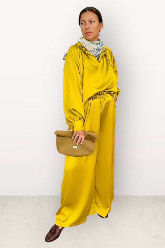 Charizma - Σετ Αέρινη Μπλουζα & Παντελόνα Σατέν Κίτρινο
