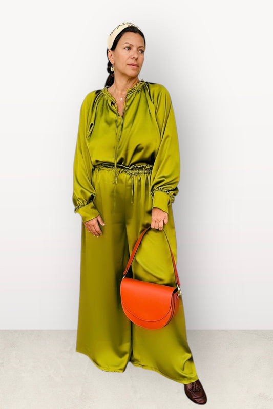 Charizma - Σετ Αέρινη Μπλουζα & Παντελόνα Σατέν Πράσινο
