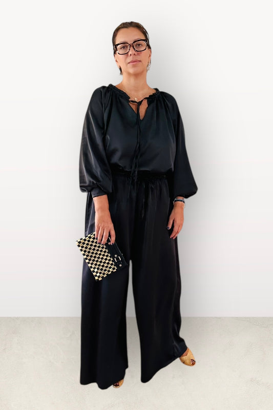 Charizma - Σετ Αέρινη Μπλουζα & Παντελόνα Σατέν Μαύρο