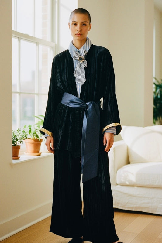Charizma - Σετ Crushed Velvet με Ζώνη Σατέν & Φαρδιά Παντελόνα Μπλε