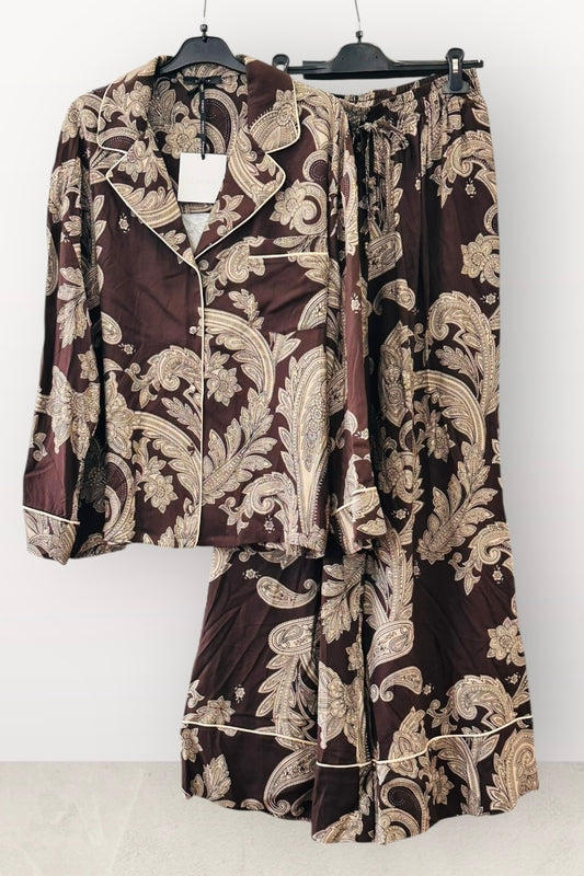 Charizma - Σετ Αέρινη Μπλουζα & Παντελόνα Σατέν Καφέ