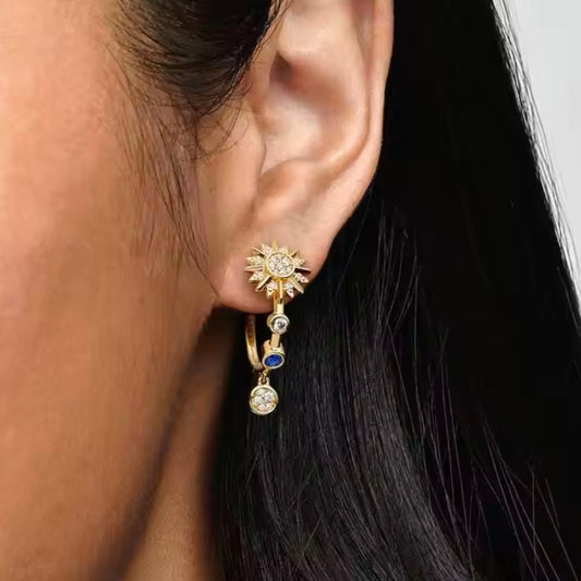 Σκουλαρίκια Κρικάκια 925 Επίχρυσα Αστεράκια, Φεγγάρι & Ήλιος