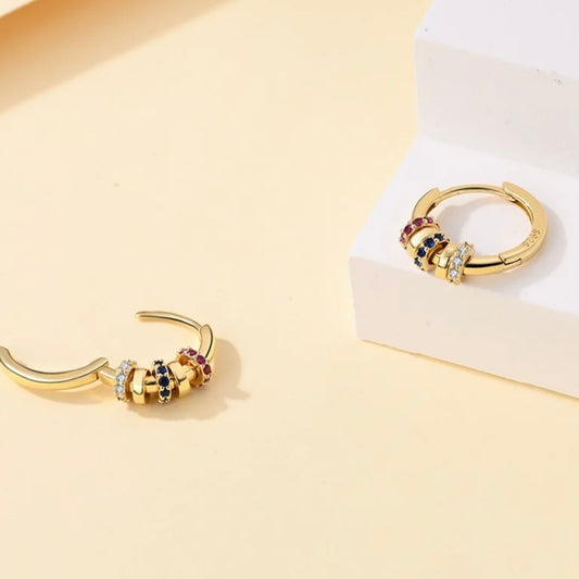 Σκουλαρίκια Κρικάκια Ασήμι 925 επιχρυσωμένα με ζιργκον χρωματιστά