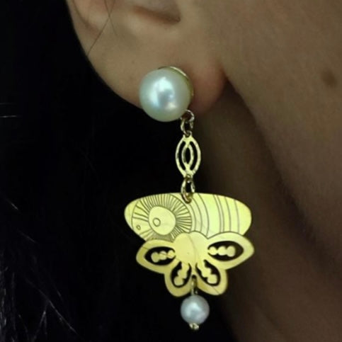 Antigone Koukos - Σκουλαρίκια 925 Ασήμι Επίχρυσο Με Μαργαριτάρια