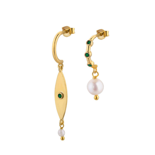 Dora Syrrou - Σκουλαρίκια Επίχρυσα Μάτι Με Μαργαριτάρια