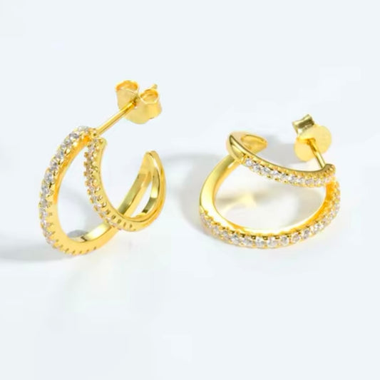 Σκουλαρίκια Κρικάκια Ασήμι 925 επιχρυσωμένα με ζιργκόν