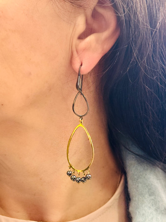 Tonia Makri - Χειροποίητα Επίχρυσα Ασημένια Σκουλαρίκια Με Ημιπολύτιμους Λίθους