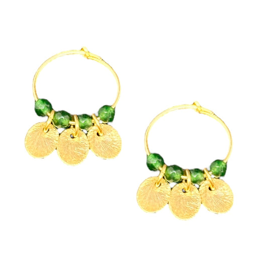 Daft - Σκουλαρίκια Κρίκος Επίχρυσα με Ημιπολύτιμες Πέτρες & Φλουριά