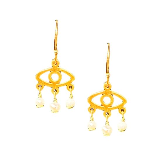 Daft - Σκουλαρίκια Μάτι Επίχρυσα με Ημιπολύτιμες Πέτρες