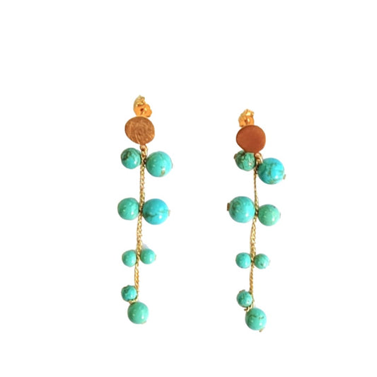 Dora Syrrou - Σκουλαρίκια Επίχρυσα Τυρκουαζ Αχάτη