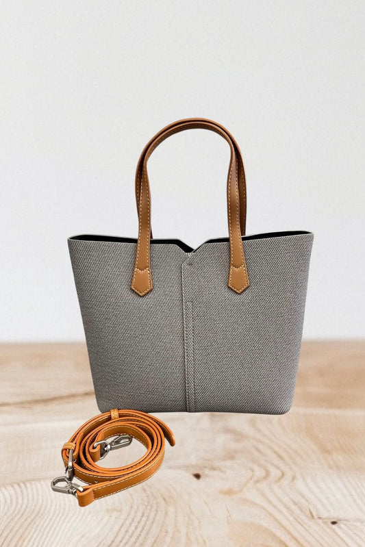 Charizma - Τσάντα Χειρός, Ώμου & Χιαστί σε Ανοιχτό Γκρι Υφασμάτινη Υφή με 2 Λαβές