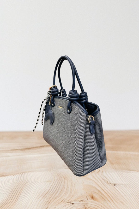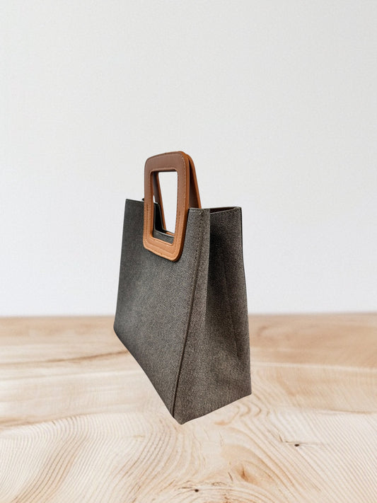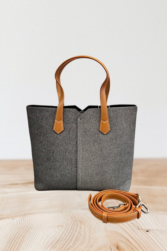 Charizma - Τσάντα Χειρός, Ώμου & Χιαστί σε Γκρι Υφασμάτινη Υφή με Τετράγωνη Λαβή