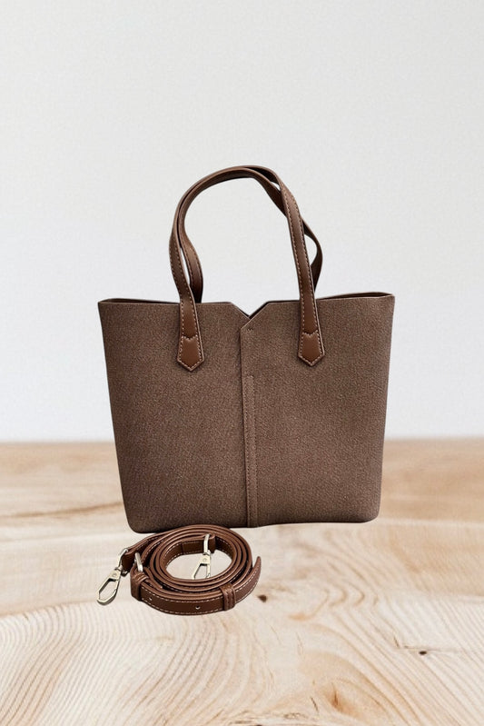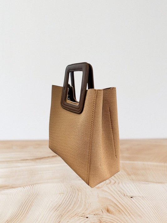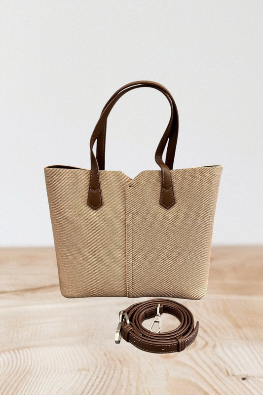 Charizma - Τσάντα Χειρός, Ώμου & Χιαστί σε Μόκα Υφασμάτινη Υφή με Τετράγωνη Λαβή