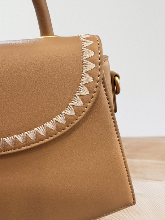 Diana @ Co Firenze - Τσαντάκι Χειρός & Ώμου Μόκα με Κεντητή Λεπτομέρεια
