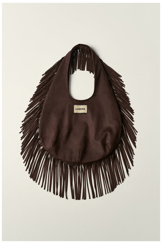 Lumina- Fringe Τσάντα Suede με Μεταξένια Σατέν Επένδυση Καφέ