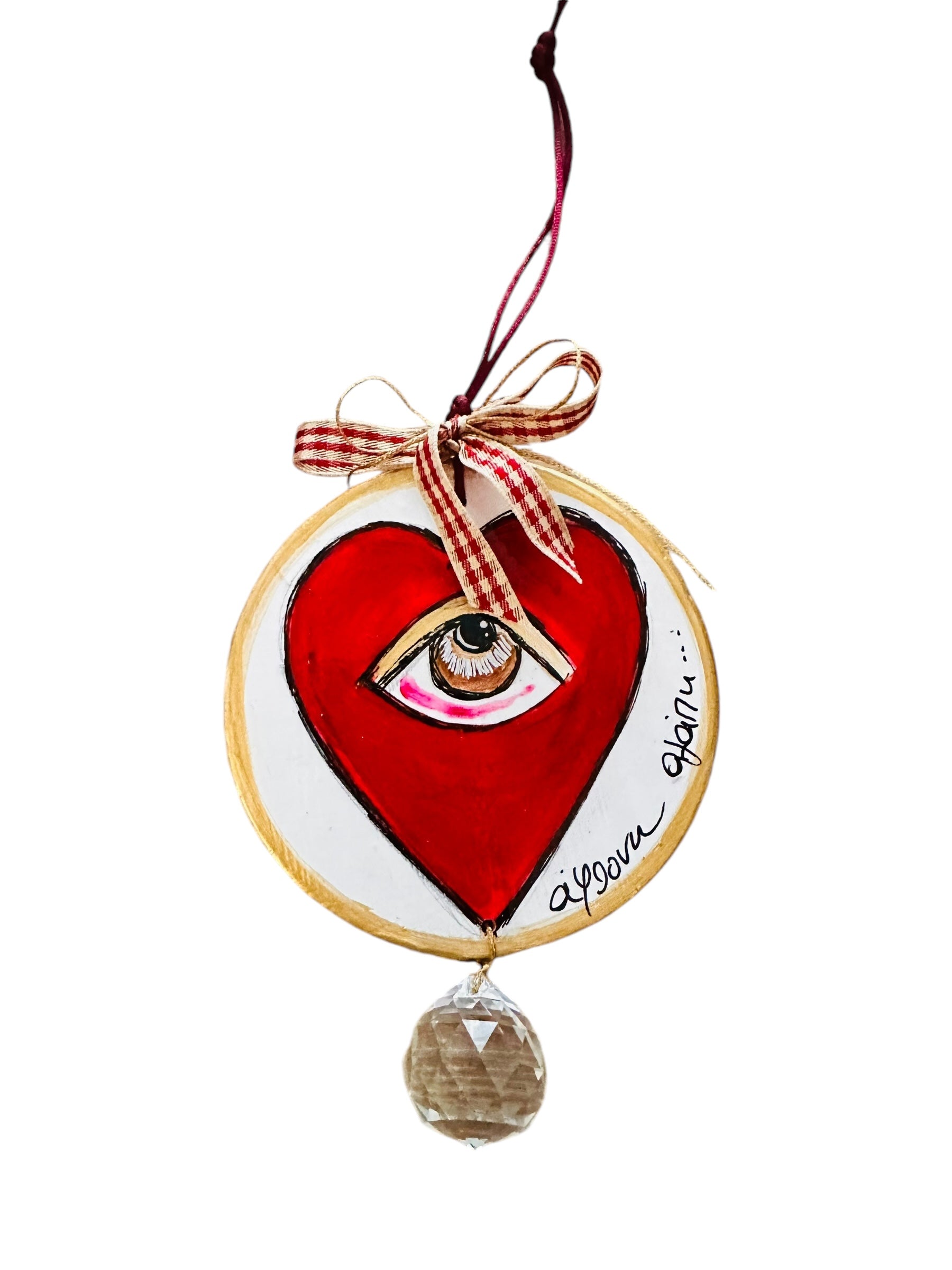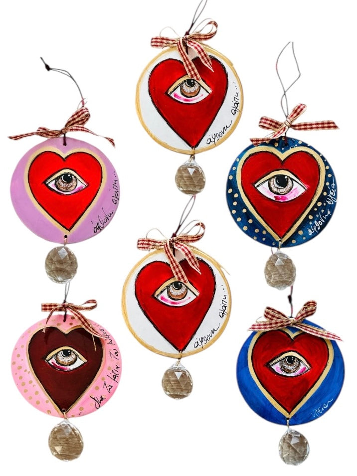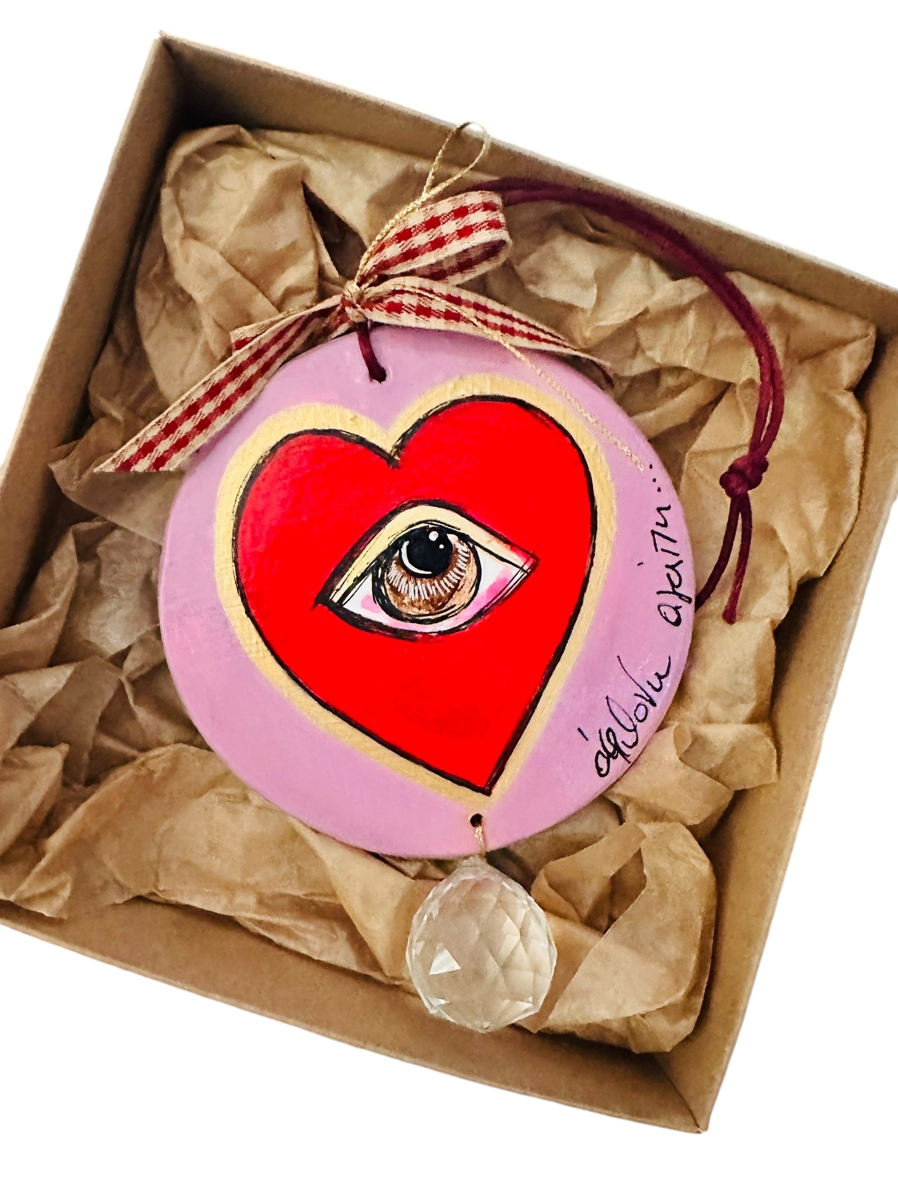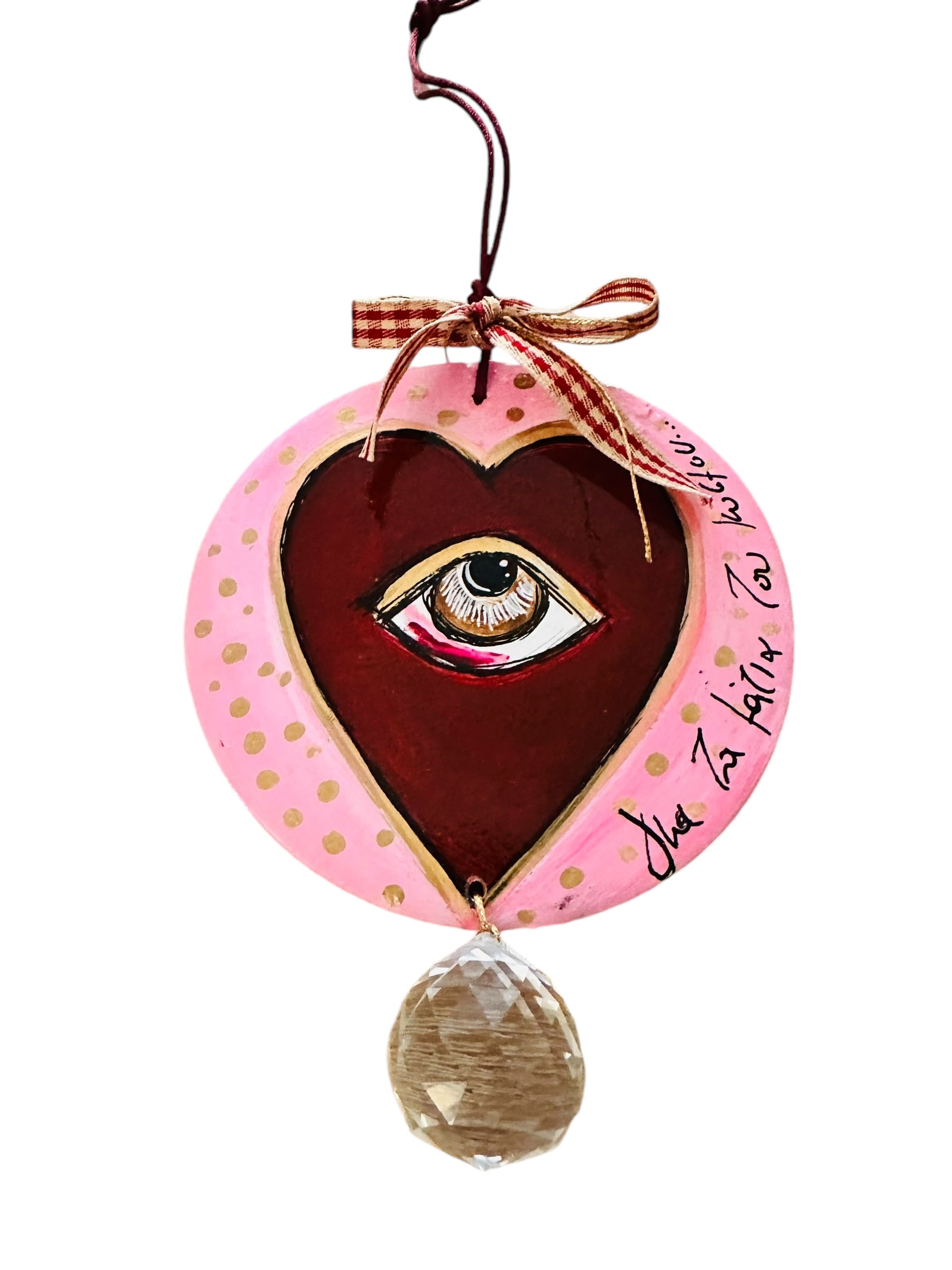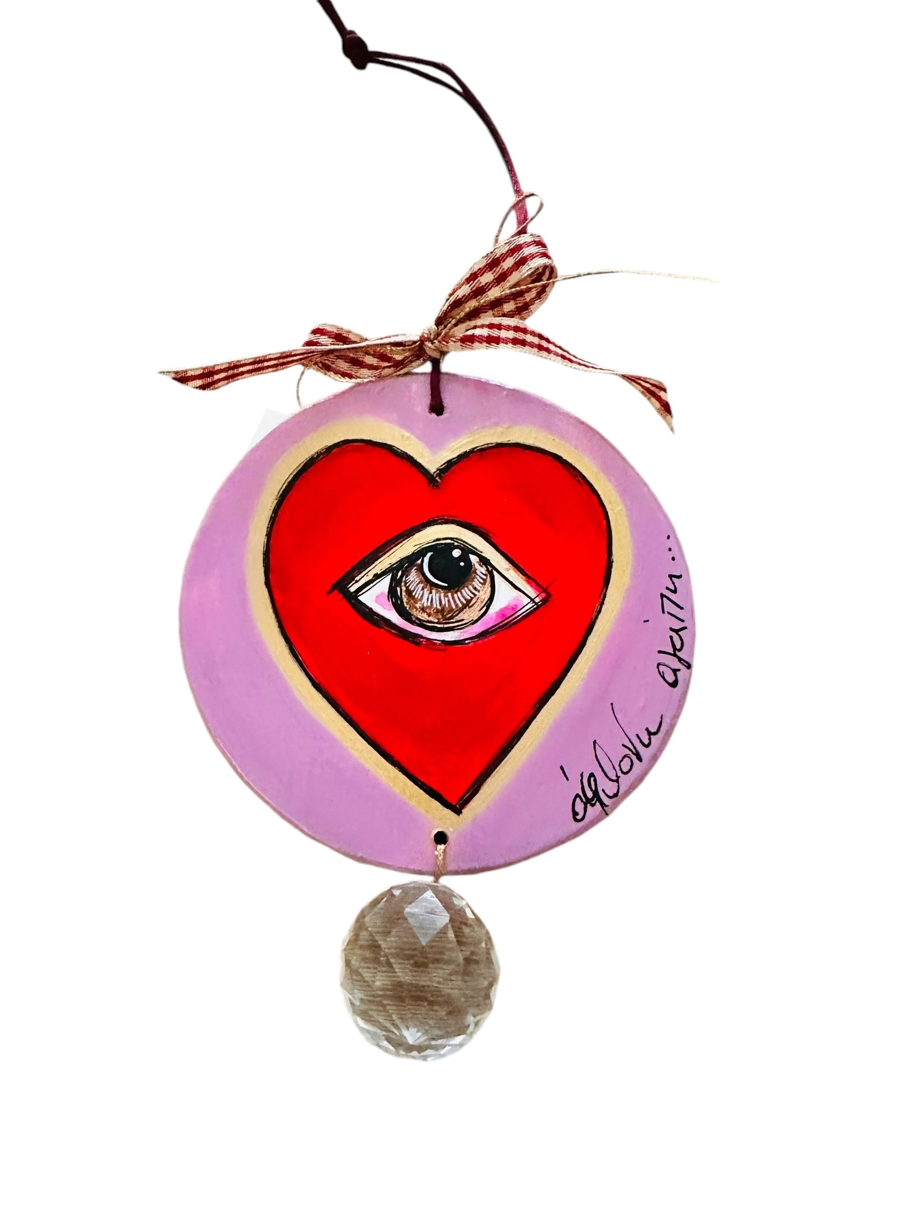 Ψαρόνι - Κεραμική Καρδιά Γούρι Με Κρύσταλλο