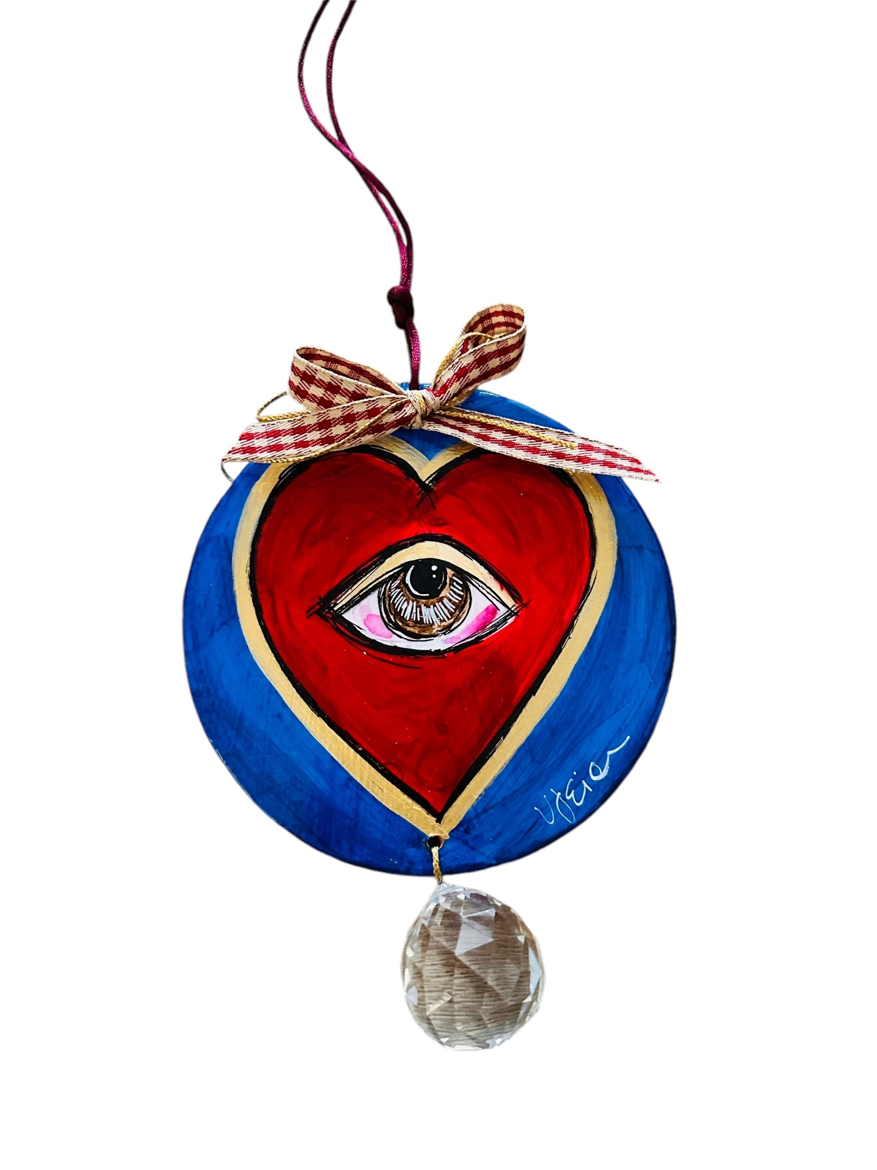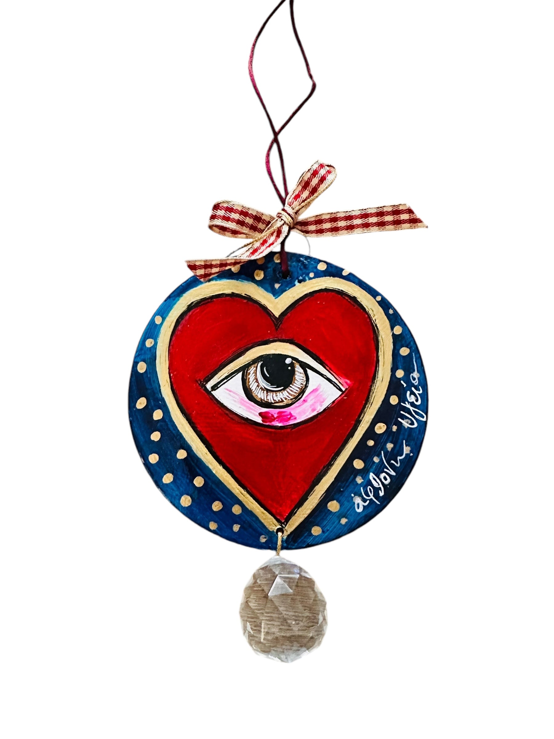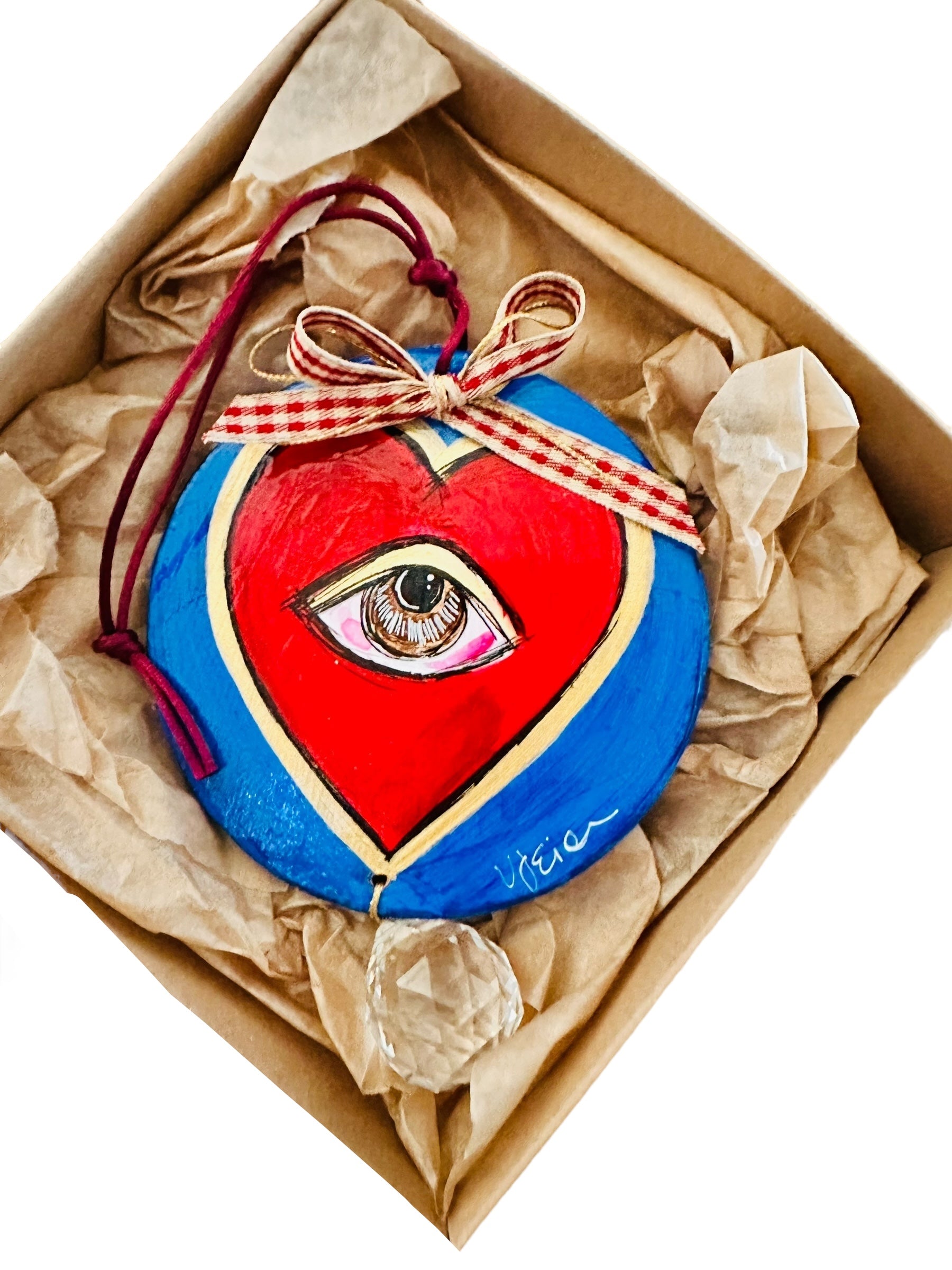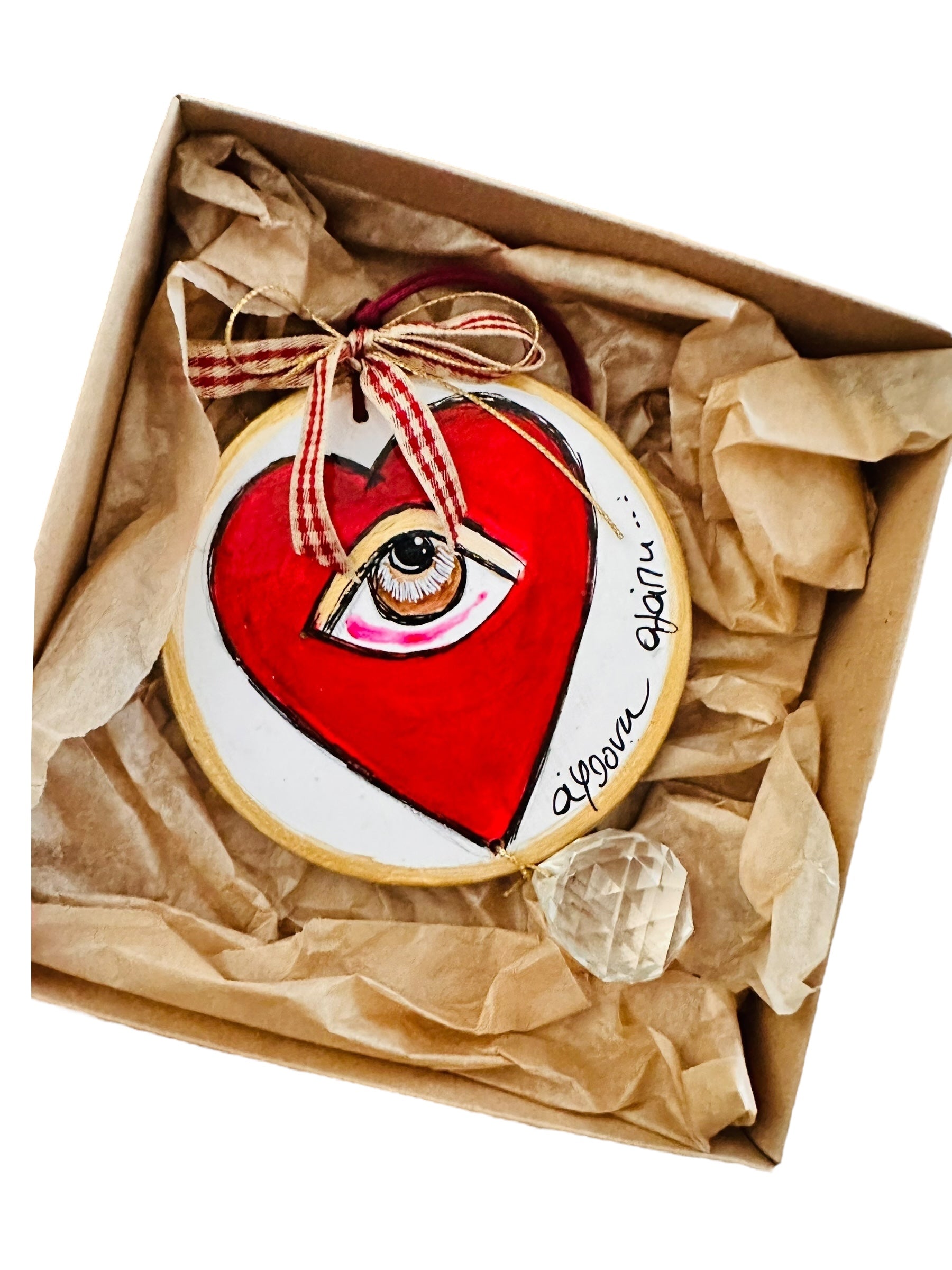 Ψαρόνι - Κεραμική Καρδιά Γούρι Με Κρύσταλλο
