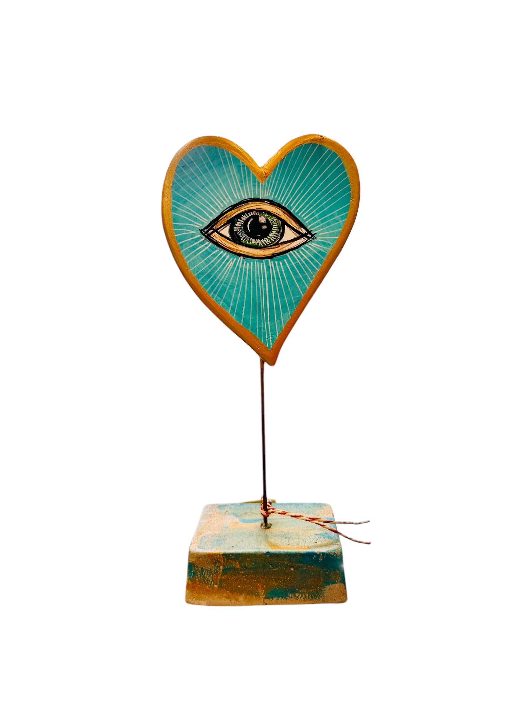 Ψαρόνι - Κεραμική Καρδιά σε Βάση
