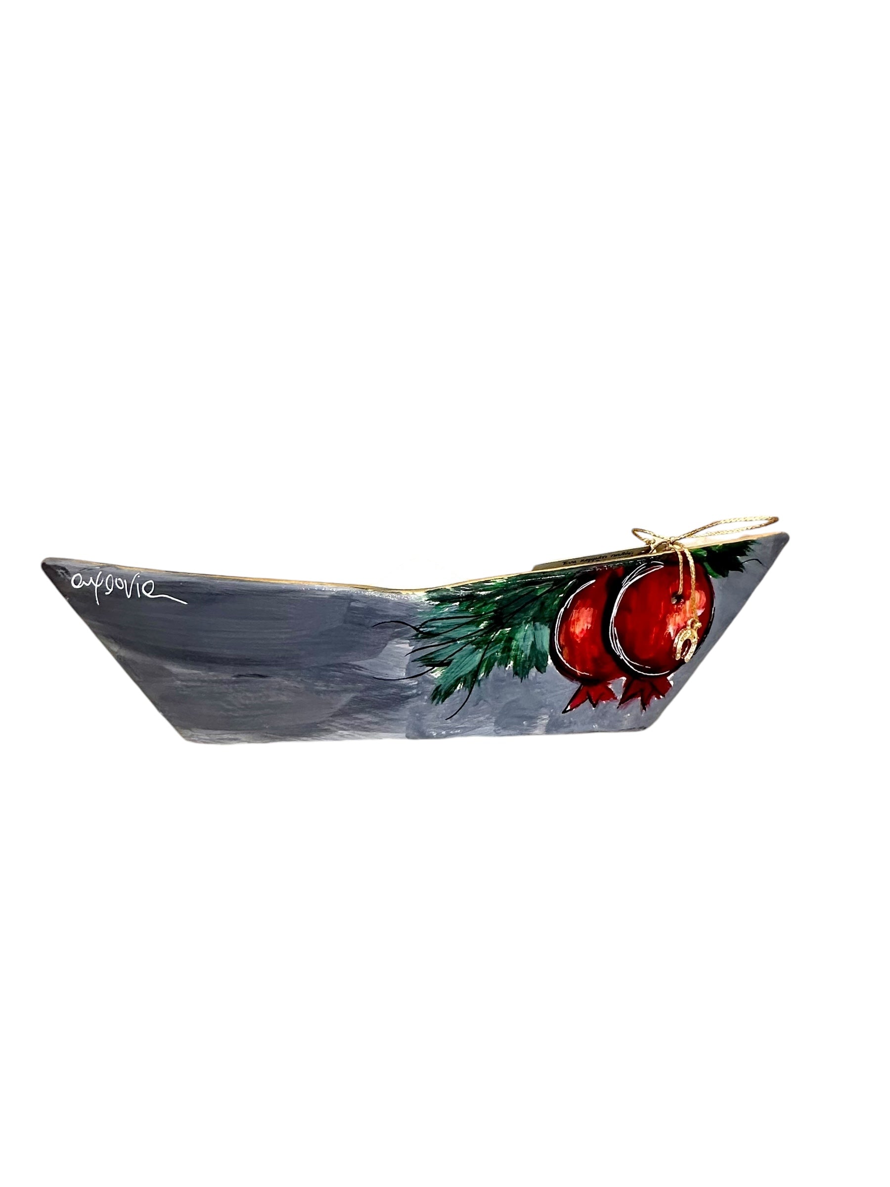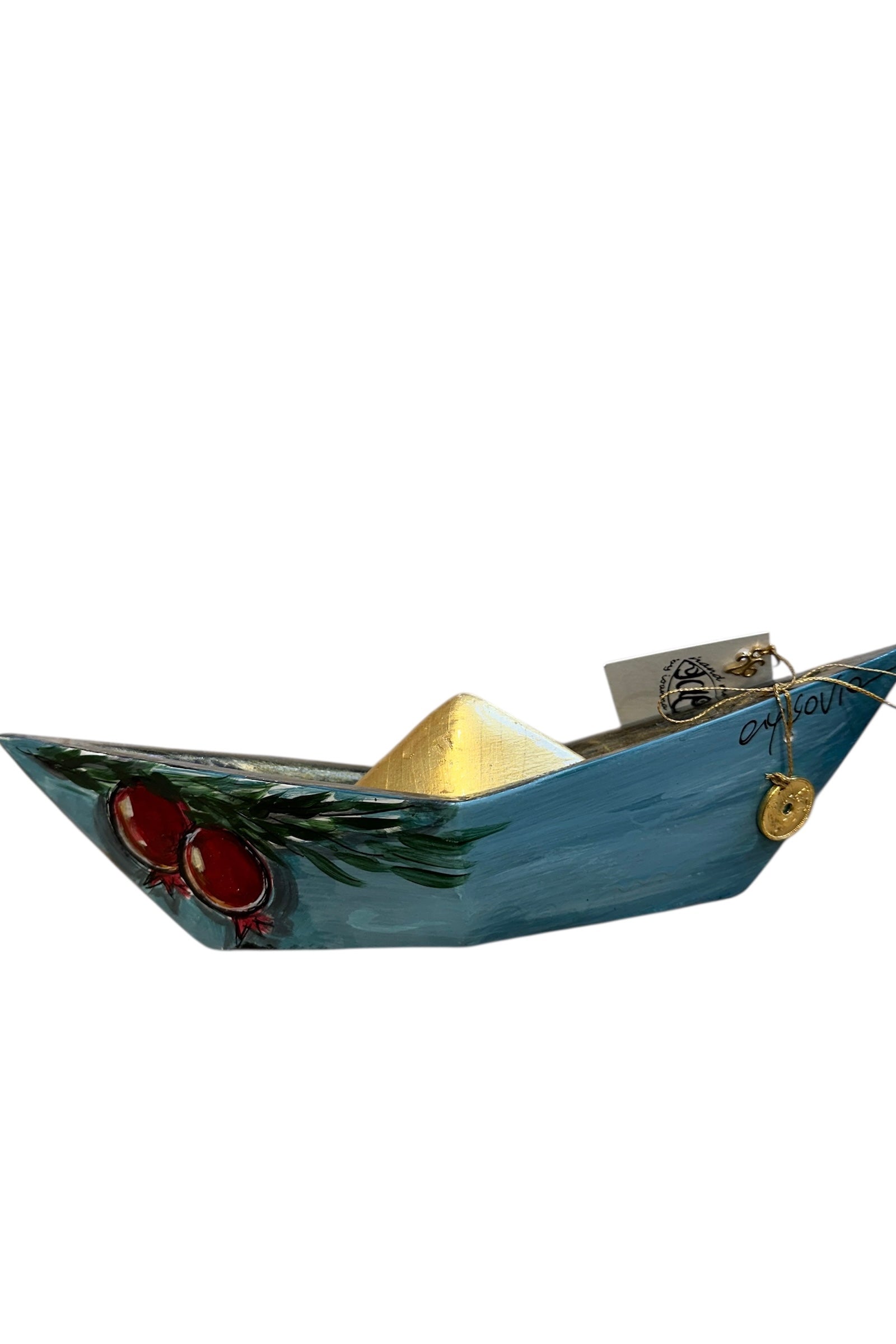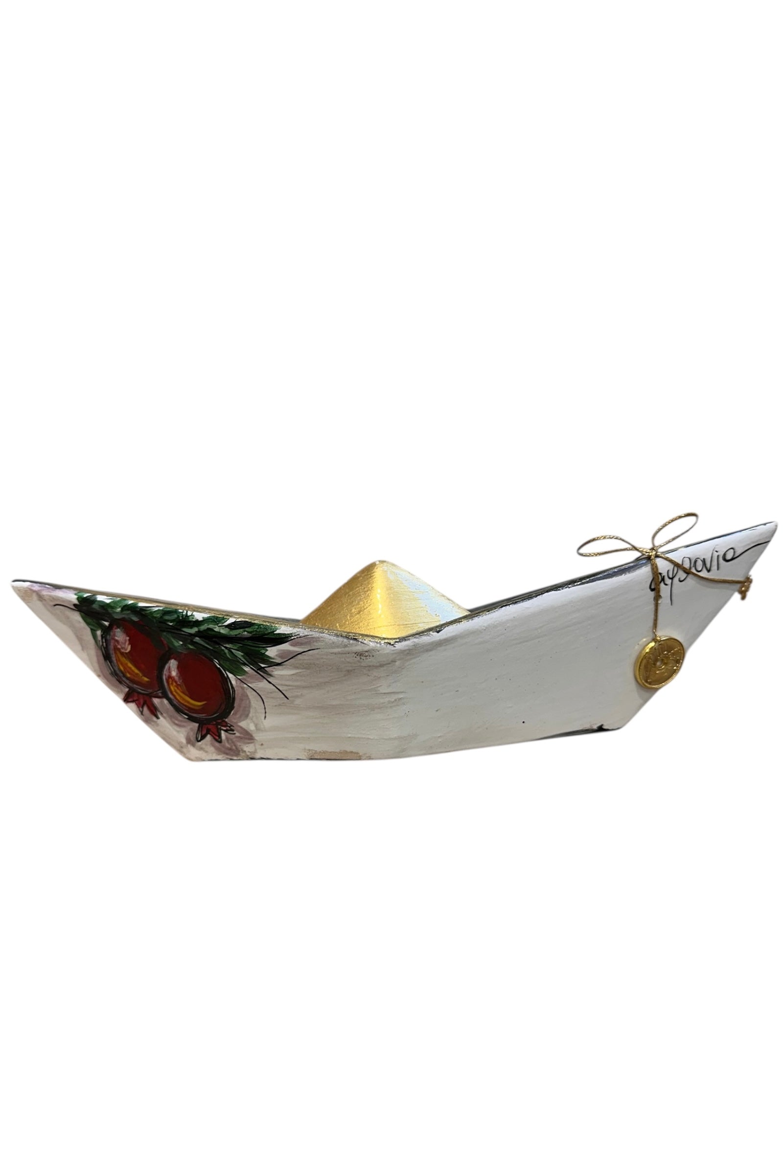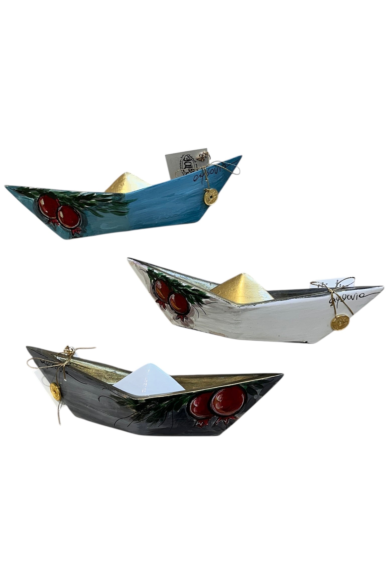 Ψαρόνι - Κεραμικό Γούρι Γκρι Βάρκα "Αφθονία"