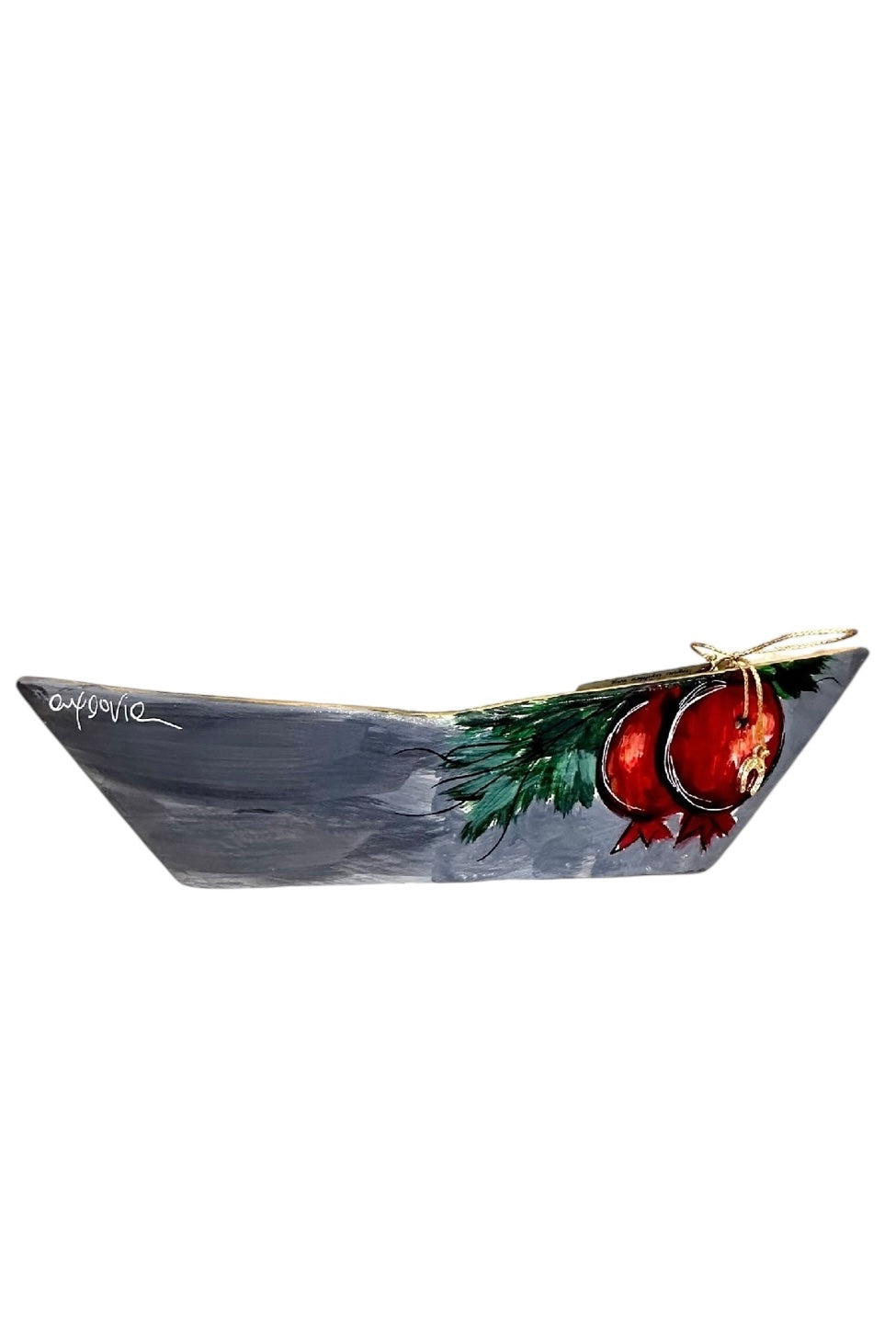 Ψαρόνι - Κεραμικό Γούρι Γκρι Βάρκα "Αφθονία"
