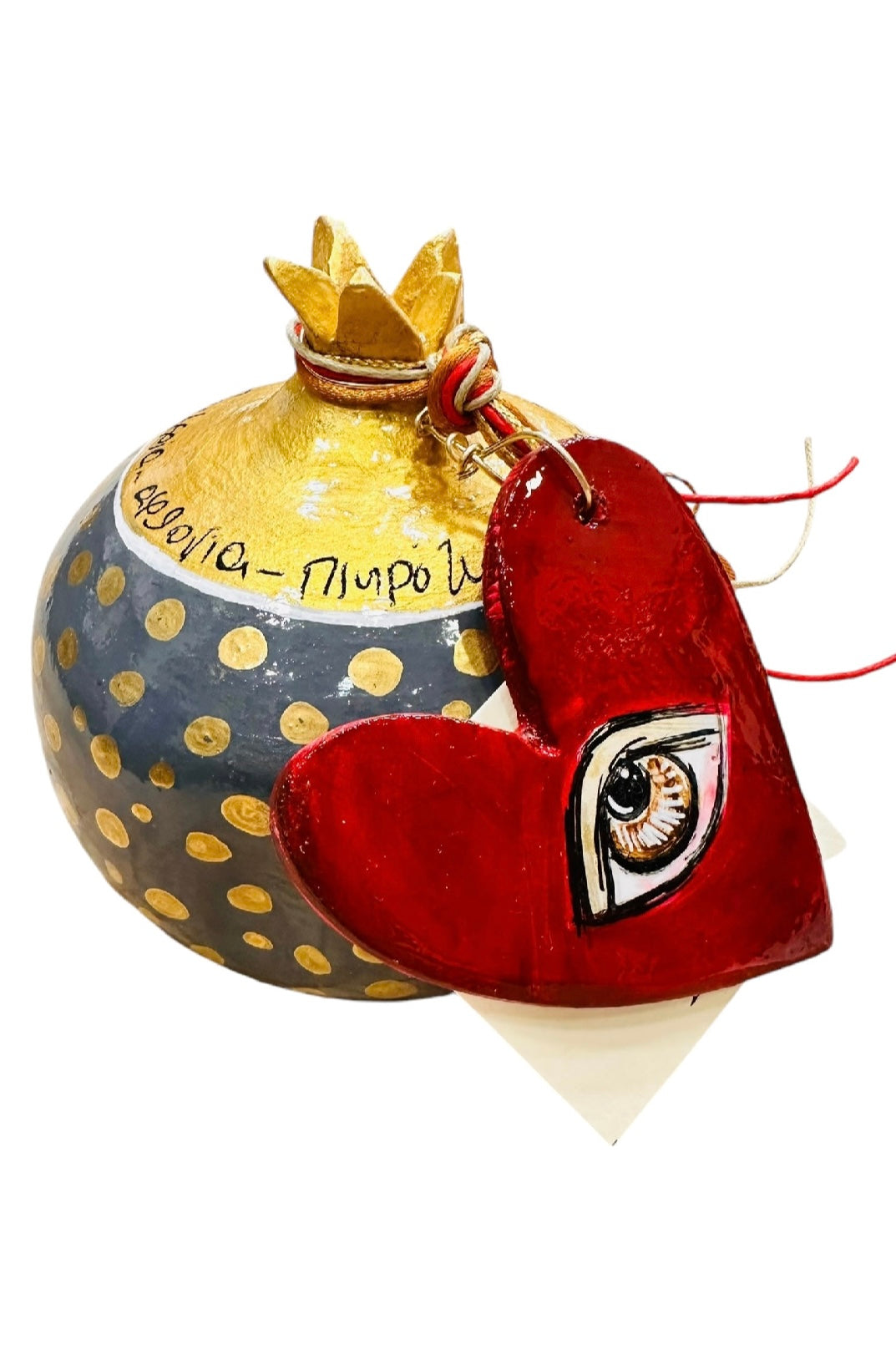Ψαρόνι - Κεραμικό Γούρι Ρόδι Με Καρδιά Μεσαίο Γκρι