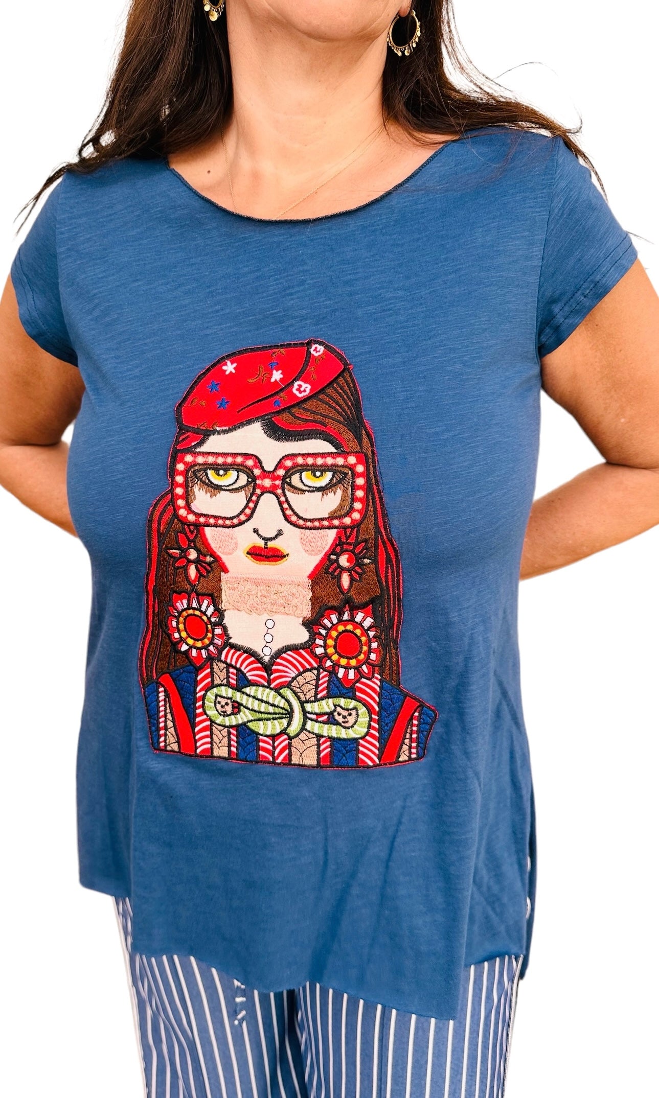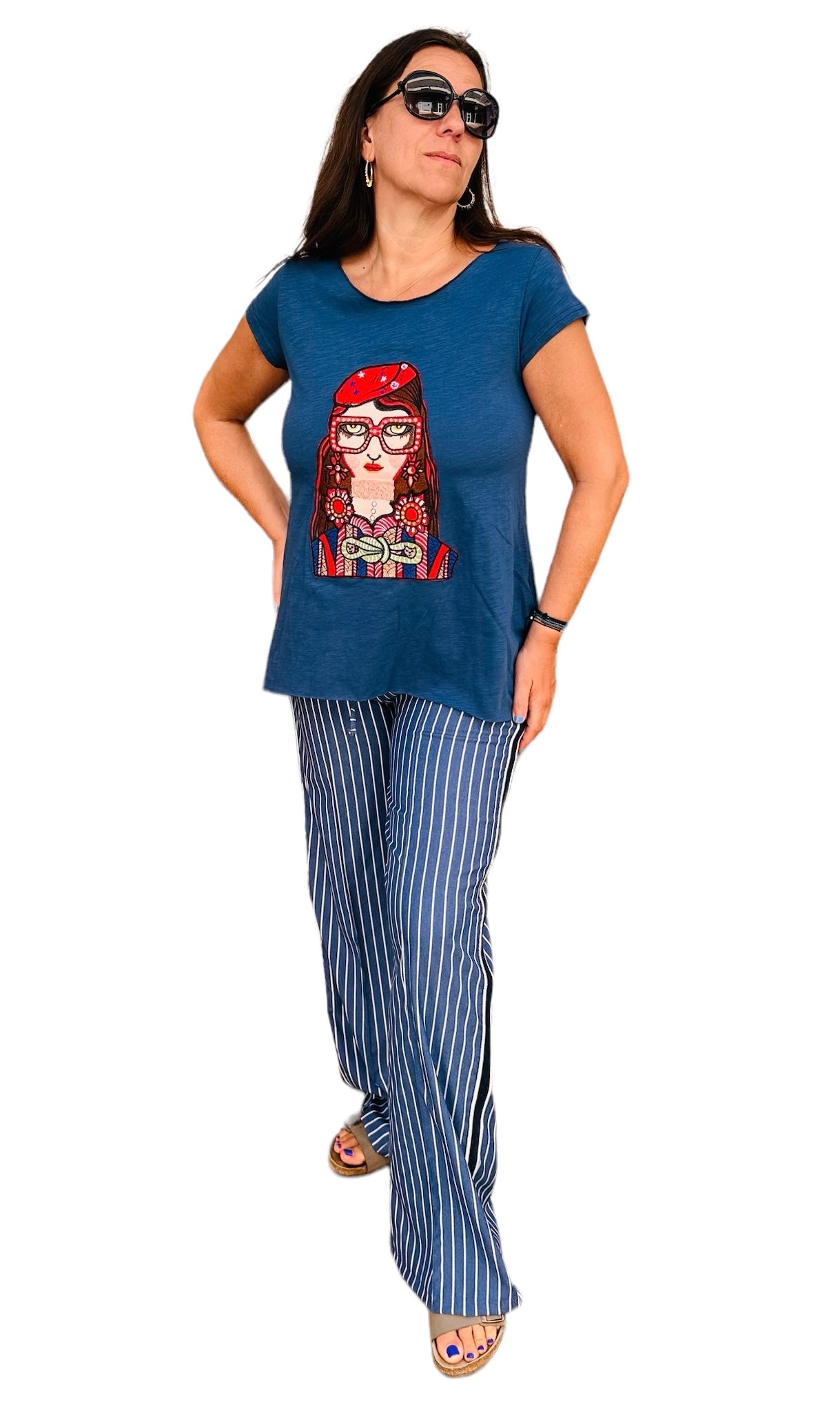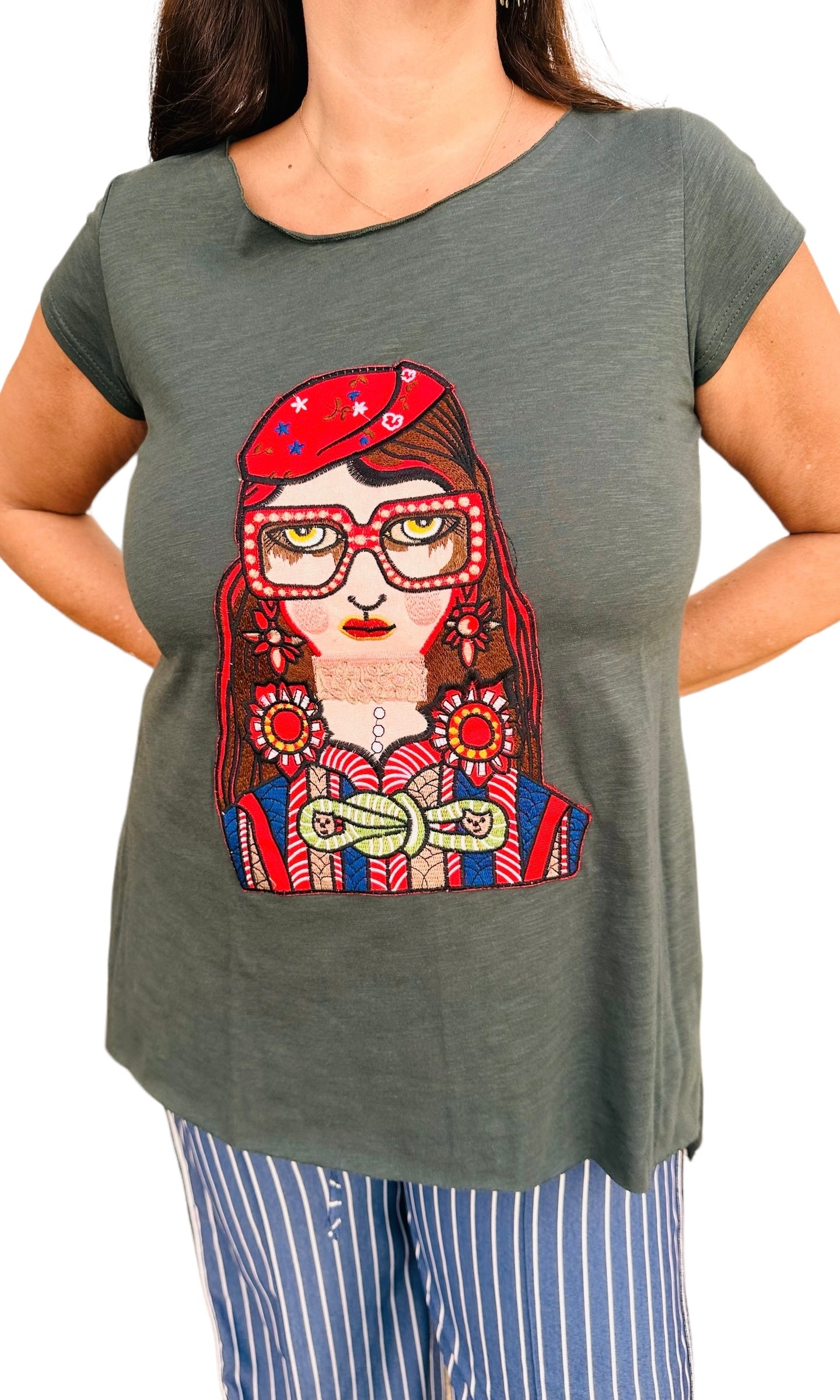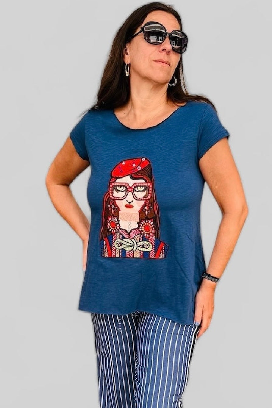 Anlyta - Μπλούζα με κοντό μανίκι Και Λαιμόκοψη Με Κέντημα