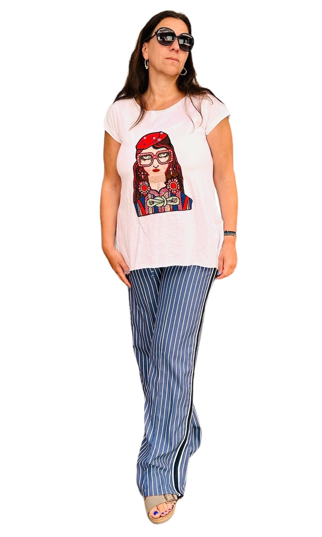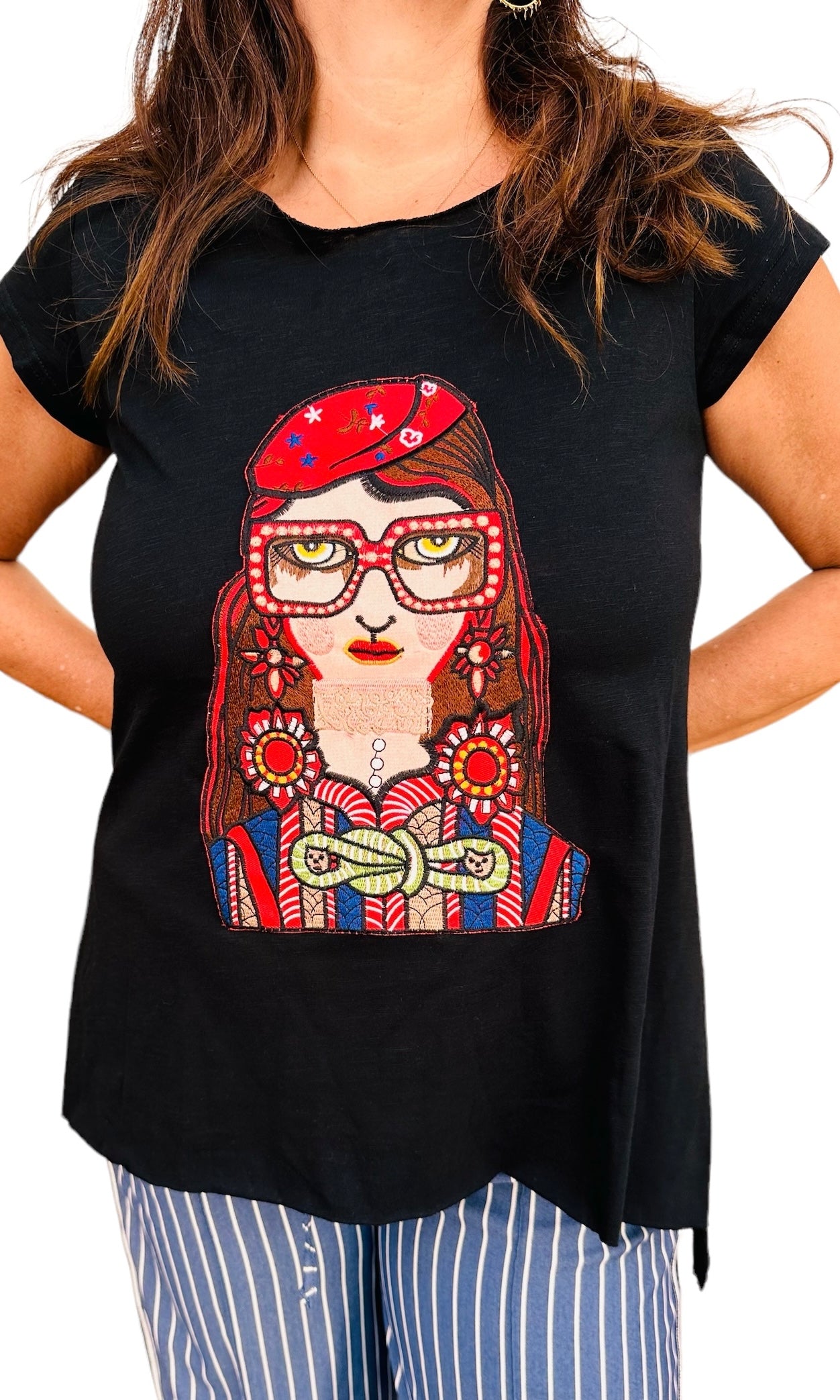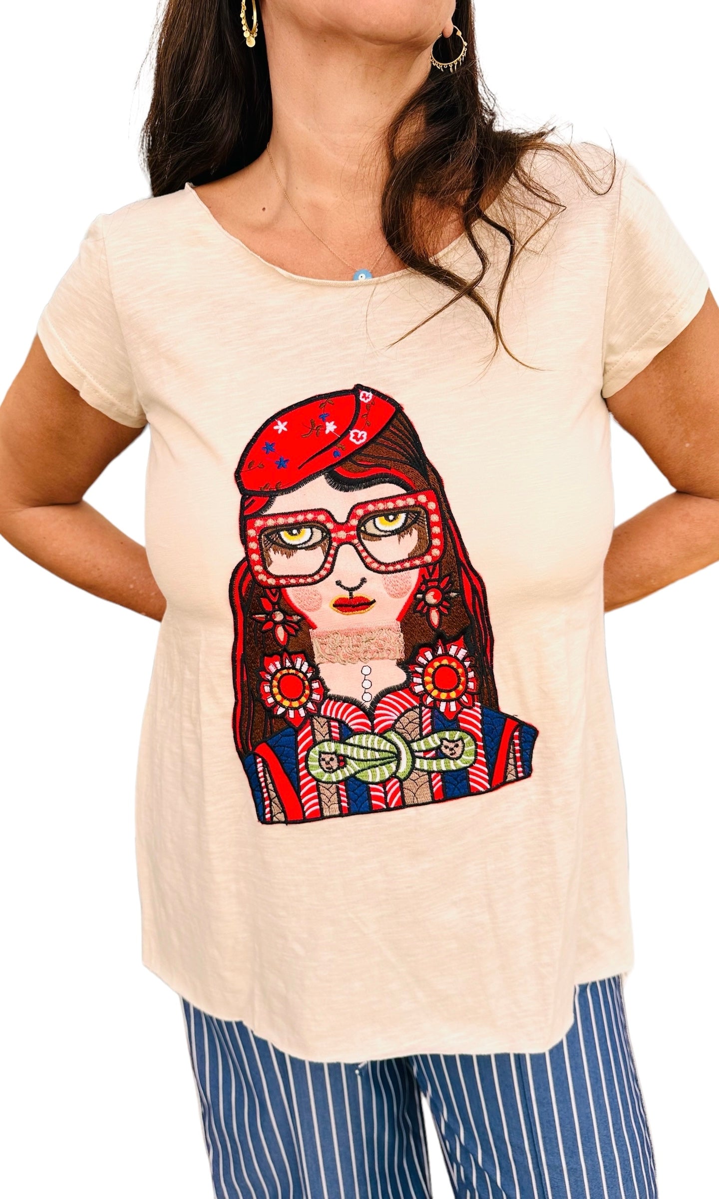Anlyta - Μπλούζα με κοντό μανίκι Και Λαιμόκοψη Με Κέντημα