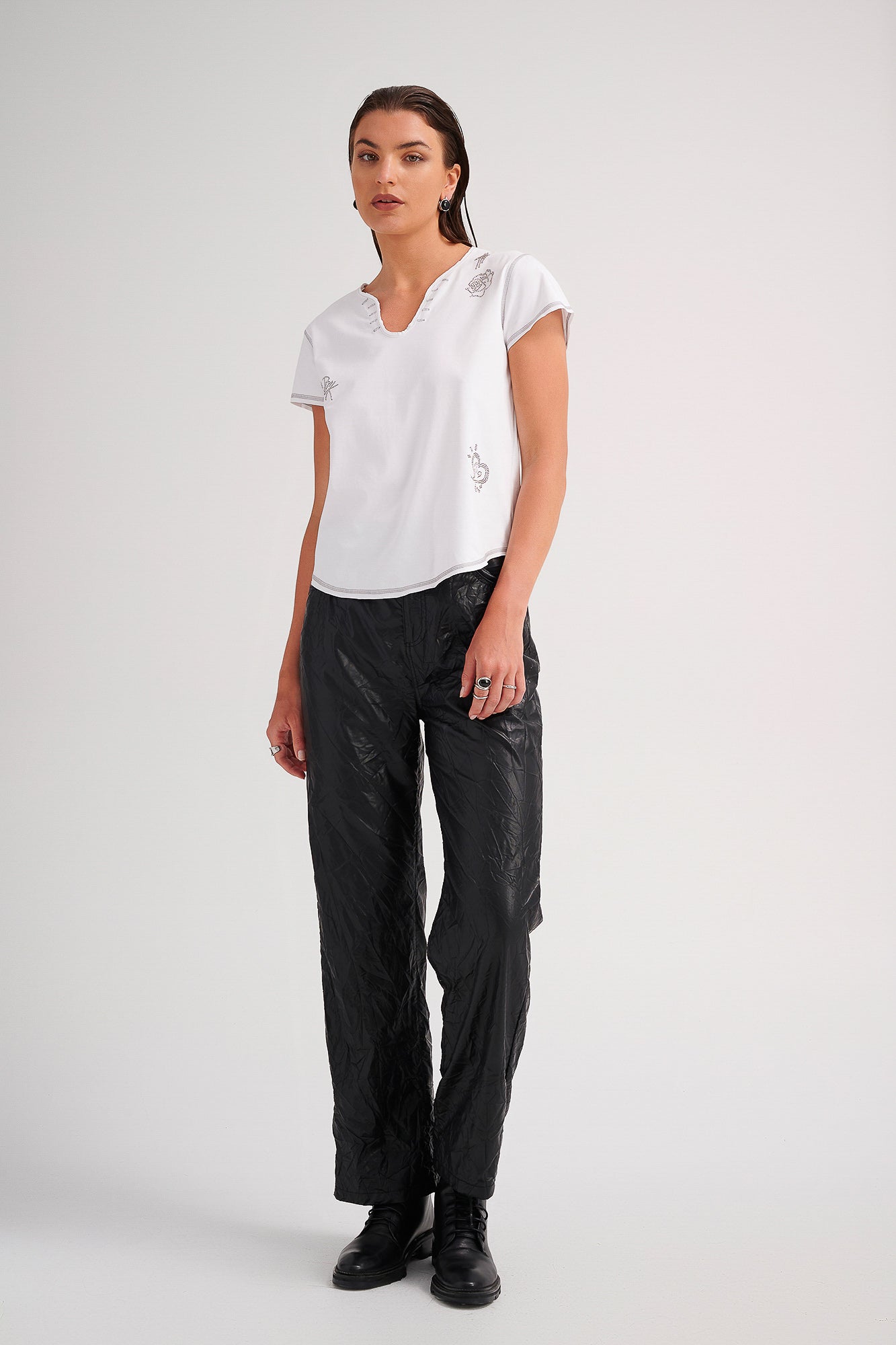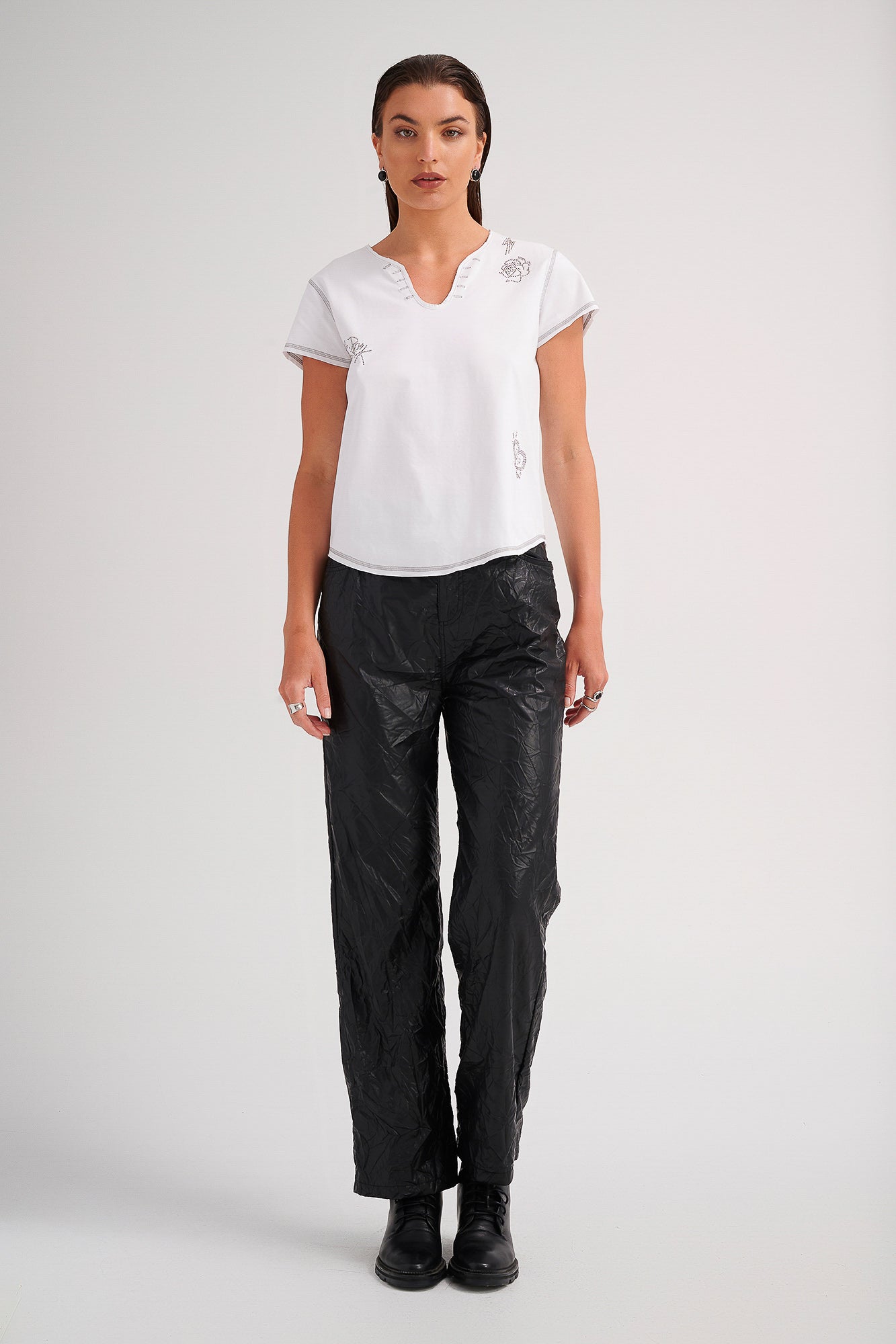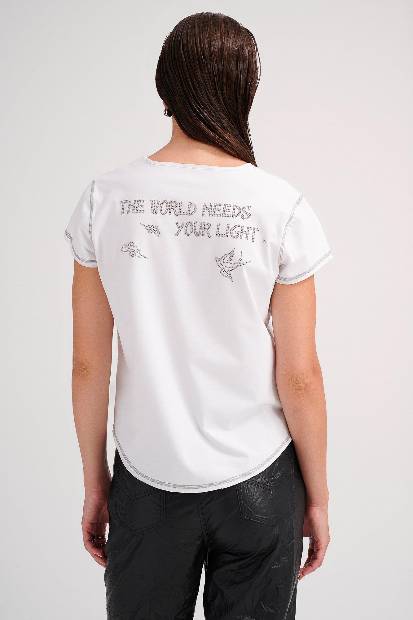 – Λευκό μπλουζάκι με διακοσμητικό σχέδιο με στρας από την Cloud 9 By L