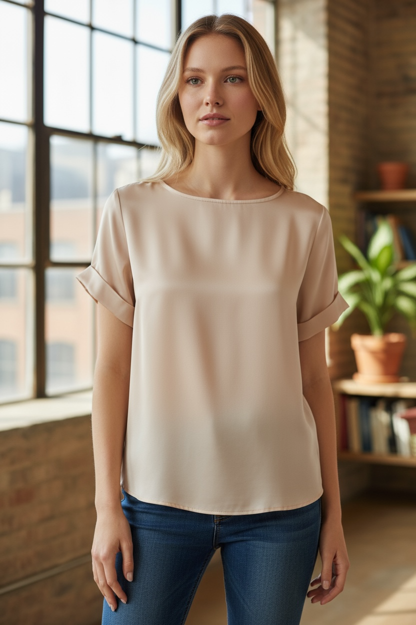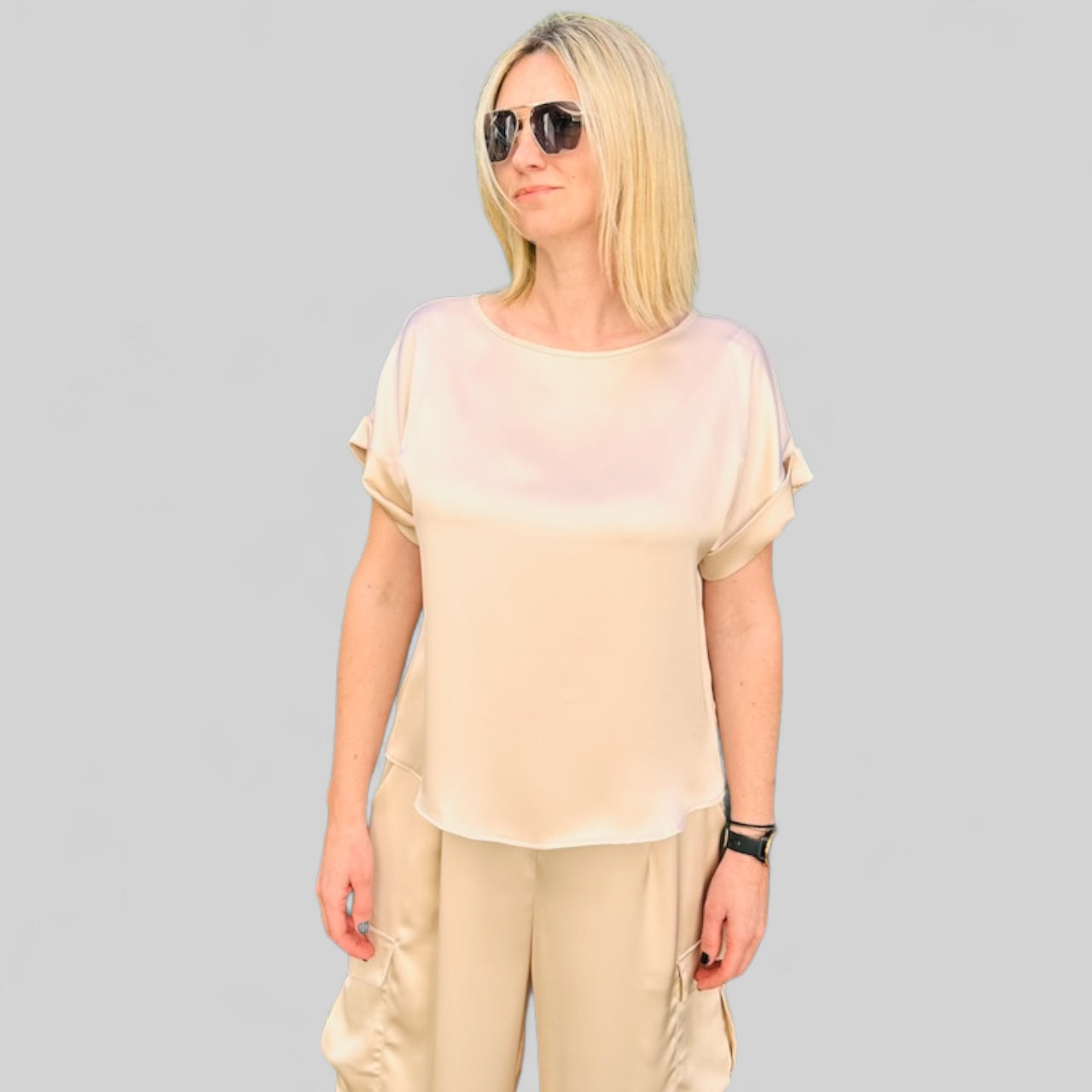 Cache Cache - Μπλούζα Σατέν Με Κοντό Μανίκι Vanilla